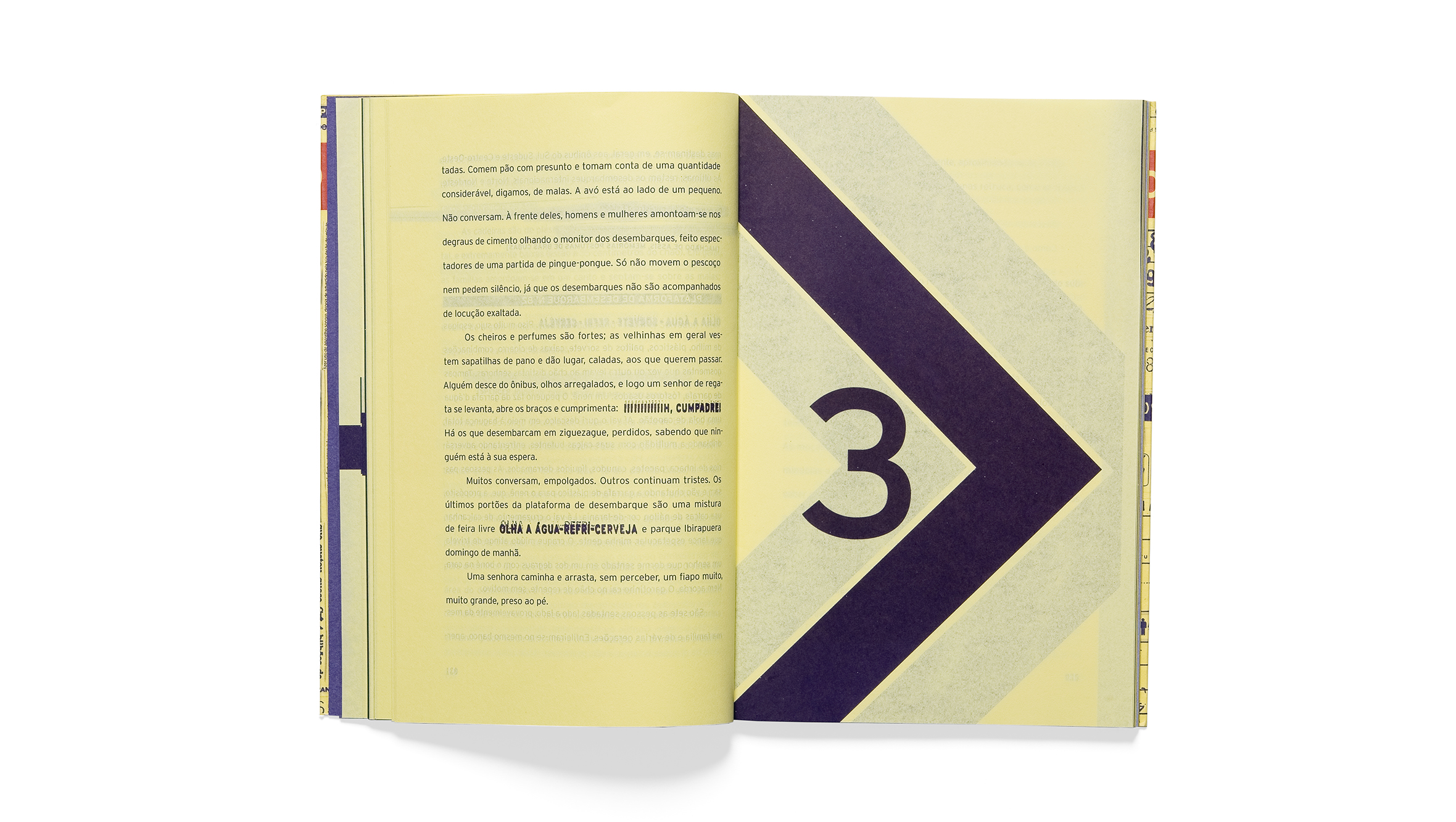 Este livro é uma reportagem sobre o Terminal Tietê, uma das maiores estações rodoviárias do mundo. O design combina elementos pesados e geométricos com a sujeira e o resultado imprevisível do xerox e da transparência do papel, criando um contraste que evoca a rodoviária: uma estrutura funcional convivendo com a multidão em trânsito.